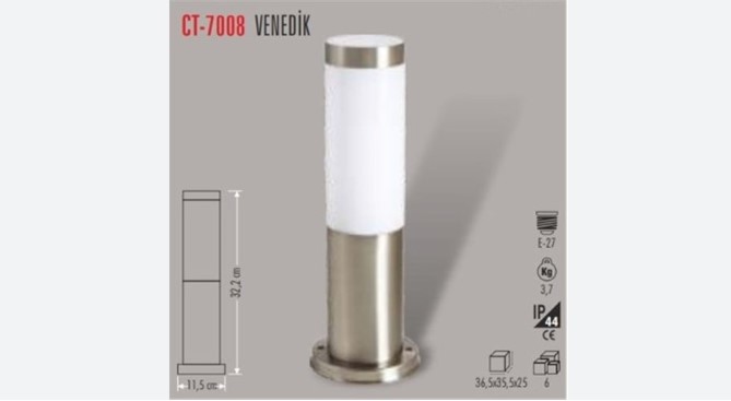CT-7008 VENEDIK BAHCE ARMATURU 32.5 CM E27 DEKORATIF DIS MEKAN, bahce ve peyzaj uygulamalarinda dekoratif gorunum, E27 duylu kullanim esnekligi ve dayanikli dis mekan yapisi sunan kaliteli bir armatur modelidir.