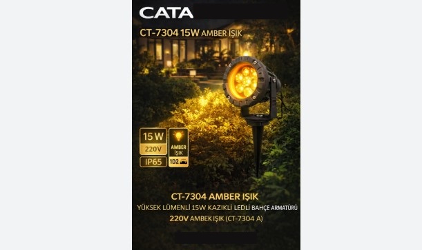 CT-7304A Urla LEDli Bahce Armaturu Amber Premium Dis Mekan modeli, bahce ve peyzaj alanlarinda daha guclu, daha dikkat cekici ve daha prestijli bir dekoratif aydinlatma saglamak icin tasarlanmis premium sinif bir urundur. Amber renkli isik tonu ile ortama sicak ve zarif bir hava kazandirir, ozellikle villa bahceleri, otel dis mekanlari, yaya yolları ve peyzaj projelerinde etkileyici bir sonuc verir.