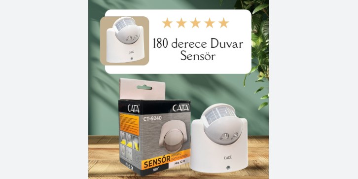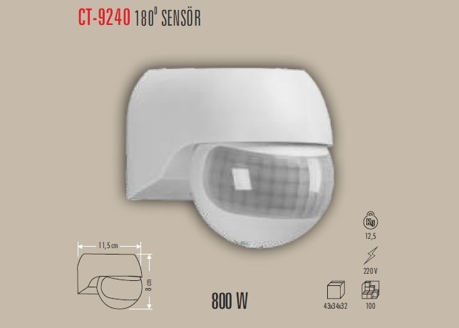 CT-9240 180 DERECE HAREKET SENSORU 1200W DIS ORTAM ALGILAYICI genis algilama alani ve otomatik kontrol ozelligi ile verimli sensor cozumudur.