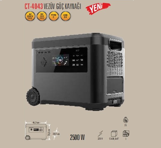 CT-4043 Vezuv Guc Kaynagi Yuksek Kapasiteli Profesyonel Enerji Unitesi, yuksek guc gerektiren teknik sistemlerde kararlı ve guvenilir enerji performansi sunan premium sinif bir cozumdur.