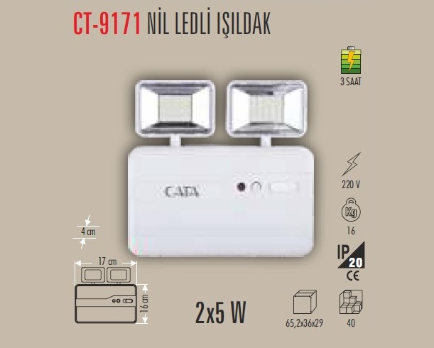 CT-9171 ACIL AYDINLATMA ARMATURU AKULU GUVENLIK AYDINLATMA SISTEMI acil durumlarda guvenli gorus saglayan dayanikli ve profesyonel aydinlatma cozumudur.