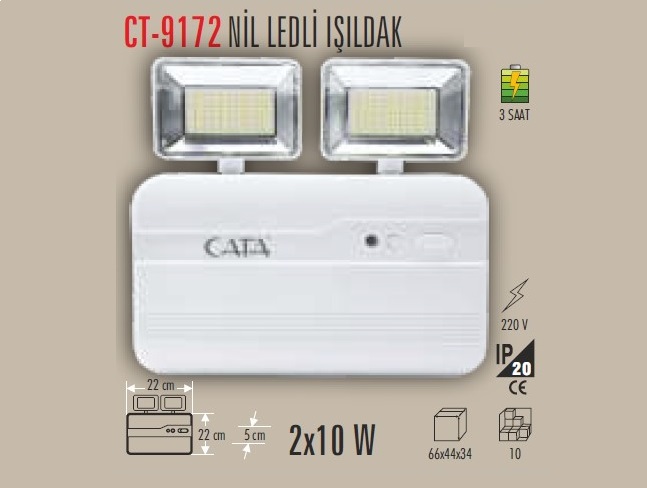 CT-9172 ACIL AYDINLATMA ARMATURU 2X10W CIFT BASLIKLI PROFESYONEL MODEL genis alanlar icin guclu isik veren profesyonel acil aydinlatma armaturudur.