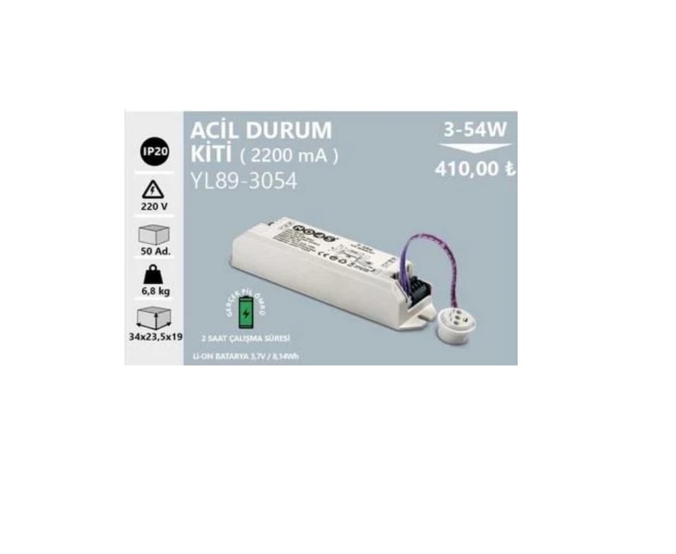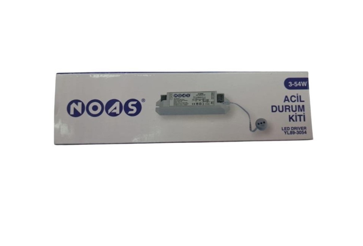 YL89-3054 NOAS LED 3-54W ACIL DURUM KITLI DRIVER ELEKTRONIK URUN, elektrik kesintilerinde aydinlatma surekliligini desteklemek icin tasarlanmis profesyonel bir LED driver cozumudur. 3W-54W arasi genis uyumlulugu ile LED panel ve armaturlarda kullanima uygundur; otel, hastane, okul, ofis, koridor ve acil cikis guzergahlarinda guvenlik odakli kullanim saglar.