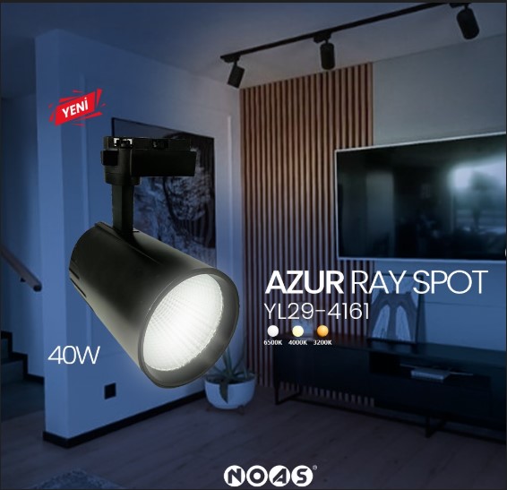 YL29-4167 NOAS LED 40W AZUR RAY SPOT 4000K SIYAH KASA, 4000K dogal beyaz aydinlatmasi ve siyah kasa tasarimi ile magaza, showroom, vitrin ve dekoratif ticari alanlarda dengeli, guclu ve premium isik sunar. Azur seri profesyonel projeler icin ideal bir secenektir.