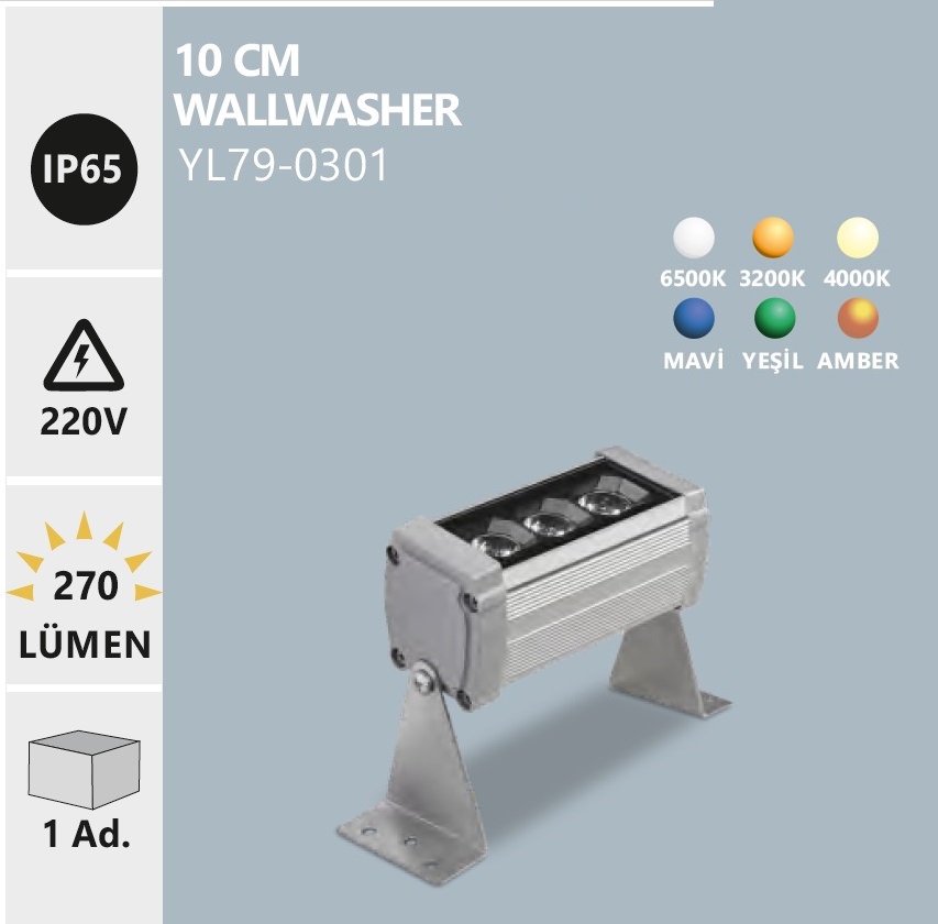 NOAS YL79-0306 LED 3W 10CM WALLWASHER AMBER DIS MEKAN DUVAR BOYAMA ARMATURU, tarihi yapilar ve dekoratif cephe uygulamalarinda sicak amber isik etkisi sunan kompakt ve kaliteli bir wallwasher modelidir.