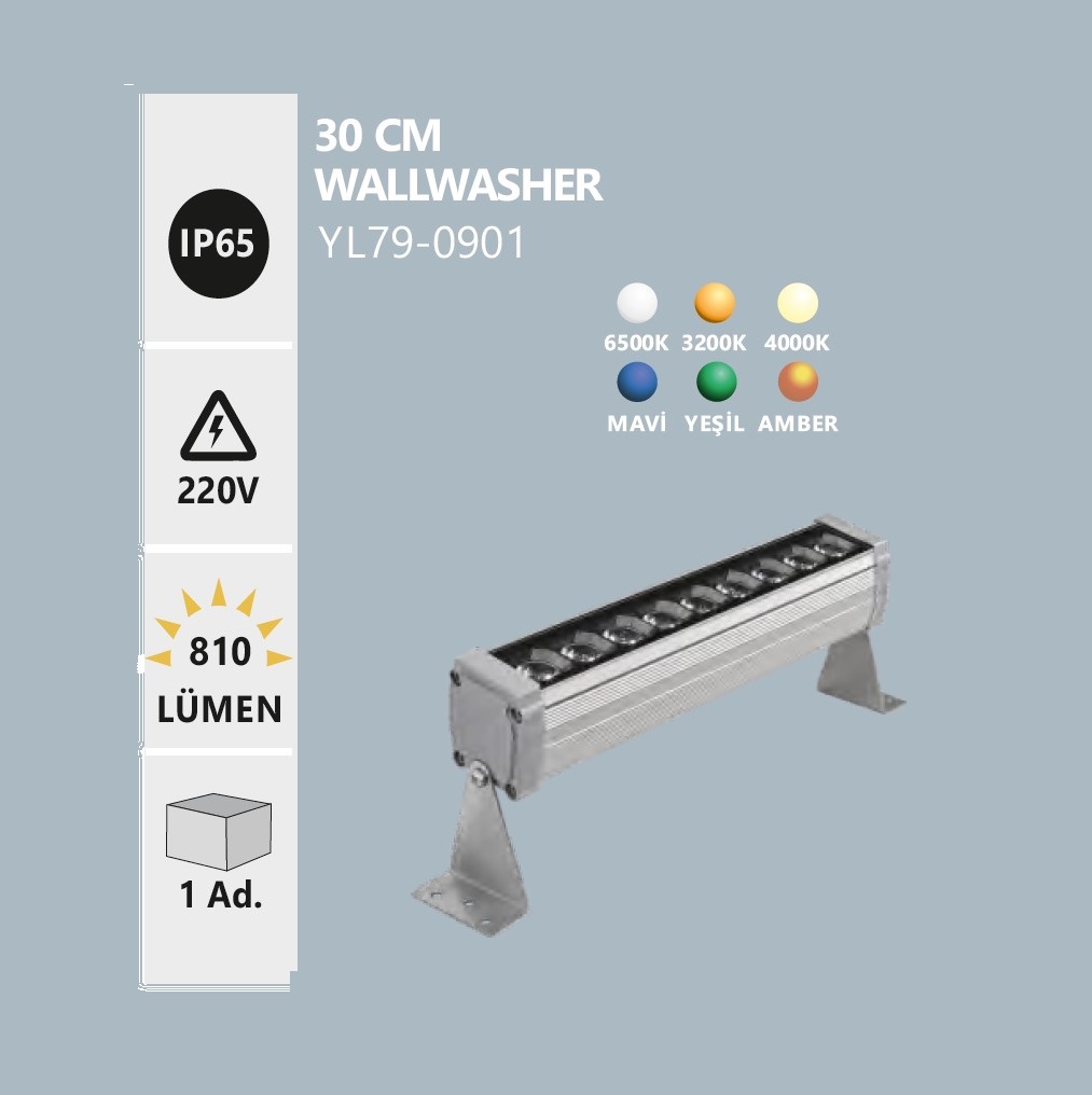 NOAS YL79-0907 LED 9W 30CM WALLWASHER 4000K DIS MEKAN DUVAR BOYAMA ARMATURU, dengeli 4000K isik tonu ve 9W performansiyla modern cephe ve duvar boyama uygulamalarinda guclu sonuc sunar.