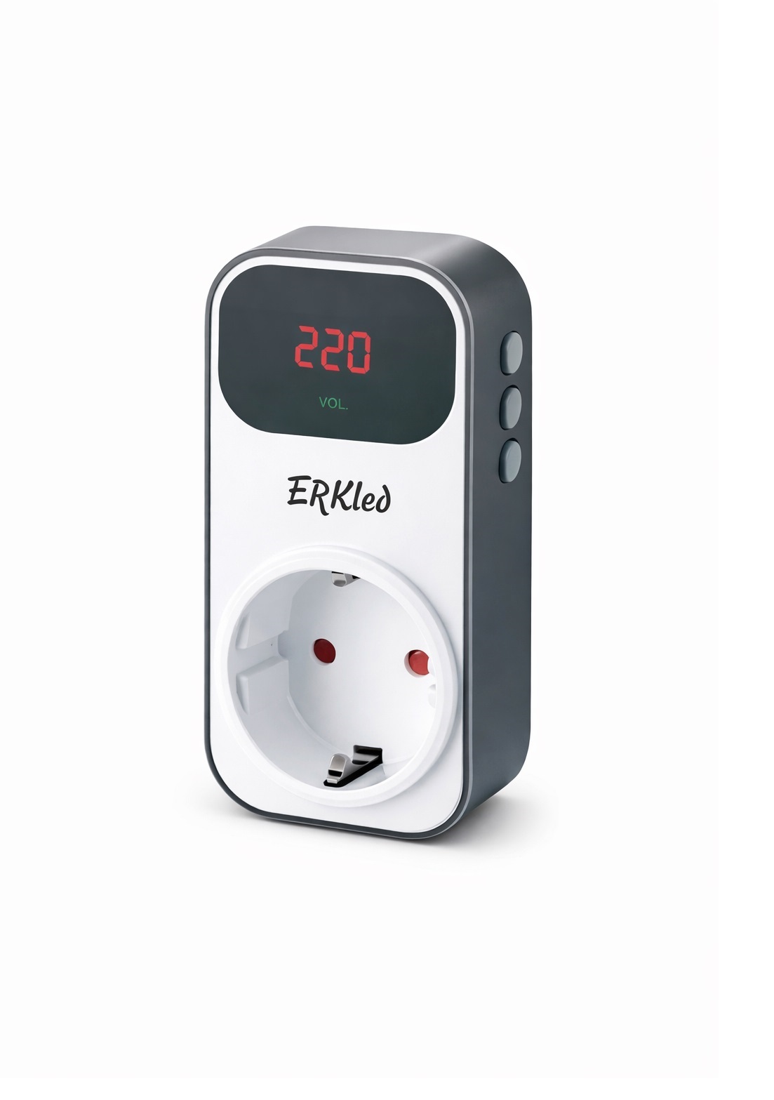 ERKled ERK1081 dijital ekranlı akım korumalı priz ile elektrik voltajını anlık takip edin ve elektronik cihazlarınızı aşırı gerilim ve voltaj dalgalanmalarına karşı koruyun.