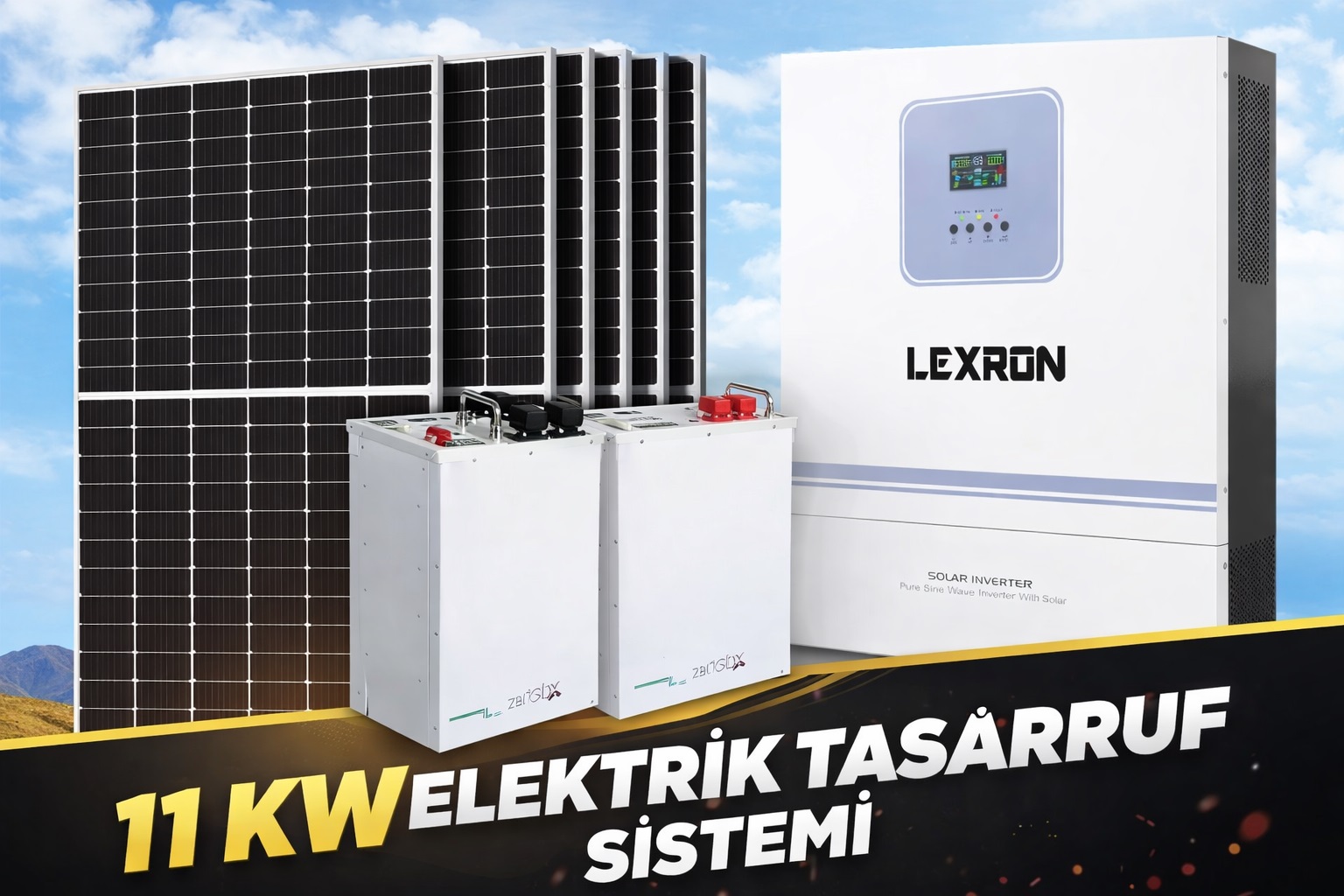 Sistemin kalbinde yer alan 11 KW Lexron Off Grid solar inverter, tüm enerji yönetimini akıllı şekilde kontrol eder. Şebekeden bağımsız çalışma özelliği ile elektrik kesintilerinden etkilenmeden sisteminizi kullanabilirsiniz.