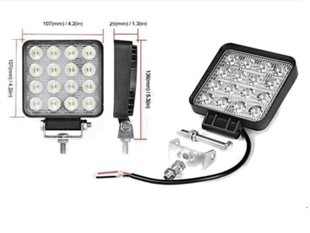 12-72V DC ile çalışan 16 LED’li çalışma projektörü. Araç, tekne, forklift ve güneş enerjisi sistemleri için güçlü beyaz ışık (6500K) ve dar açılı aydınlatma.12 volt 24 volt 36 volt 48 volt 60 volt 72 volt dc voltaj ile çalışabilir
