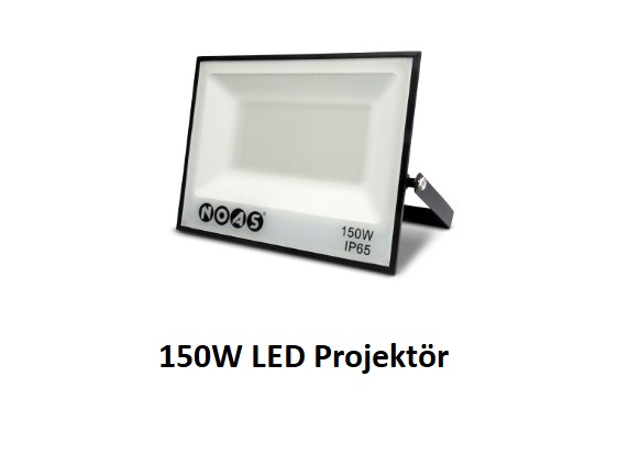 NOAS 150W LED Projektör YL70-0150 / YL70-0151 – 13.500 lümen ışık gücü, IP65 koruma, alüminyum gövde ve 6500K-3200K ışık seçenekleriyle dış mekânlarda yüksek performanslı aydınlatma.